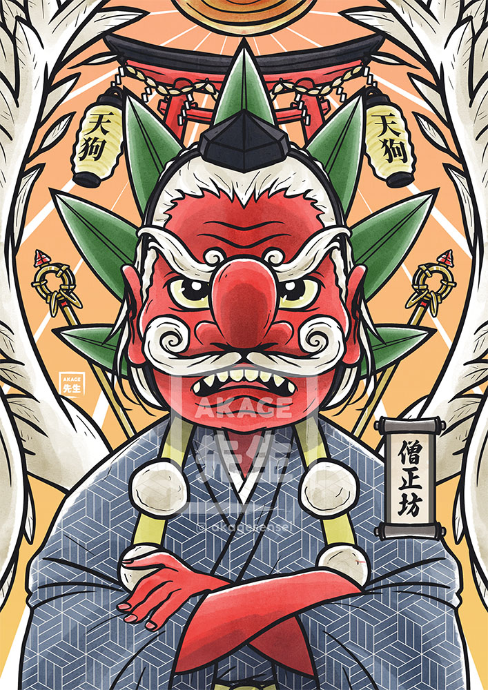 L’illustration de Sōjōbō, le roi des Tengu provient de mon projet d’encyclopédie yōkai, le livre YOKAIDEX. Cette illustration était offerte à certains contributeurs du Ulule, le financement participatif ayant servi à financer le YOKAIDEX.