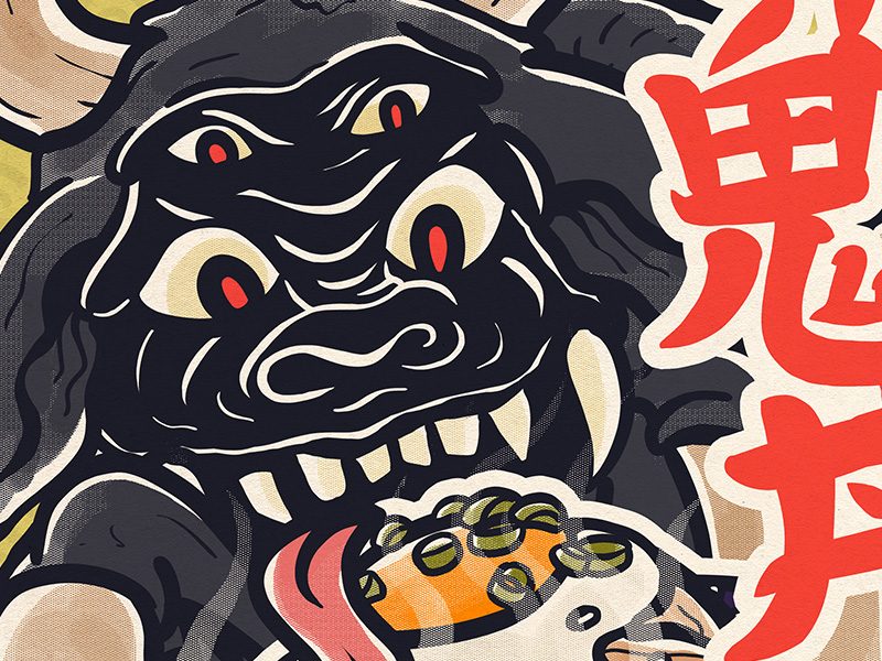 Le concept de Yōkaiya : j’ai imaginé une enseigne d’izakaya yōkai, avec toute une charte graphique inspirée de la restauration rapide japonaise. Je représente différents plats typiques japonais, plus ou moins connus, couplés avec un yōkai, une créature issue du folklore japonais. Nous avons à chaque fois une certaine logique entre le plat présenté et sa créature qui lui est rattachée. Chaque illustration peut être interprétée comme une page de menu, avec le plat et son prix, le but étant de vous faire découvrir la richesse et la diversité culinaire nippone !