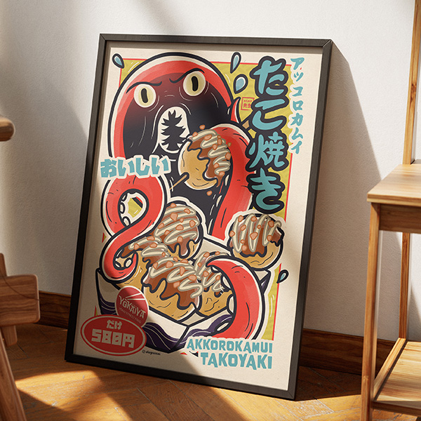 Les Akkorokamui Takoyaki sont des takoyaki faits avec un peu de lui-même ! Les takoyaki sont des boulettes de pâte cuites (proche de la gaufre) et fourrées avec des morceaux de poulpe (tako). Les takoyaki sont très populaires et originaires d’Osaka, même si on peut en trouver un peu partout au Japon. L’Akkorokamui (ou akkorokamuy) est une créature issue de la culture aïnoue et assez peu connue. Il s’agit d’une pieuvre rouge géante qui vivrait dans la baie de Uchiura, dans les mers d’Hokkaidō, tout au Nord du Japon. Hokkaidō étant les terres d’origines des aïnous, de nombreux mythes et légendes sont liés à leur culture ici.