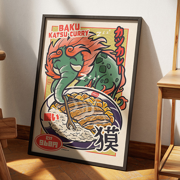 Le Baku Katsu Curry est un curry japonais un peu particulier… qui vous fera rêver ! Plus doux et moins épicé que son cousin indien, le curry japonais est servi dans une assiette, avec une portion de riz, des oignons, des carottes et pommes de terres. En ajoutant du tonkatsu (porc pané) au curry, nous avons le katsu curry (prononcé au Japon katsukarē カツカレー). Le Baku lui, est un yōkai originaire de Chine, qui se nourrit des rêves des humains. Mon plat vous permettra de profiter d’un meilleur sommeil si vous le dégustez avant de dormir. Pratique si vous souffrez d’insomnies chroniques !